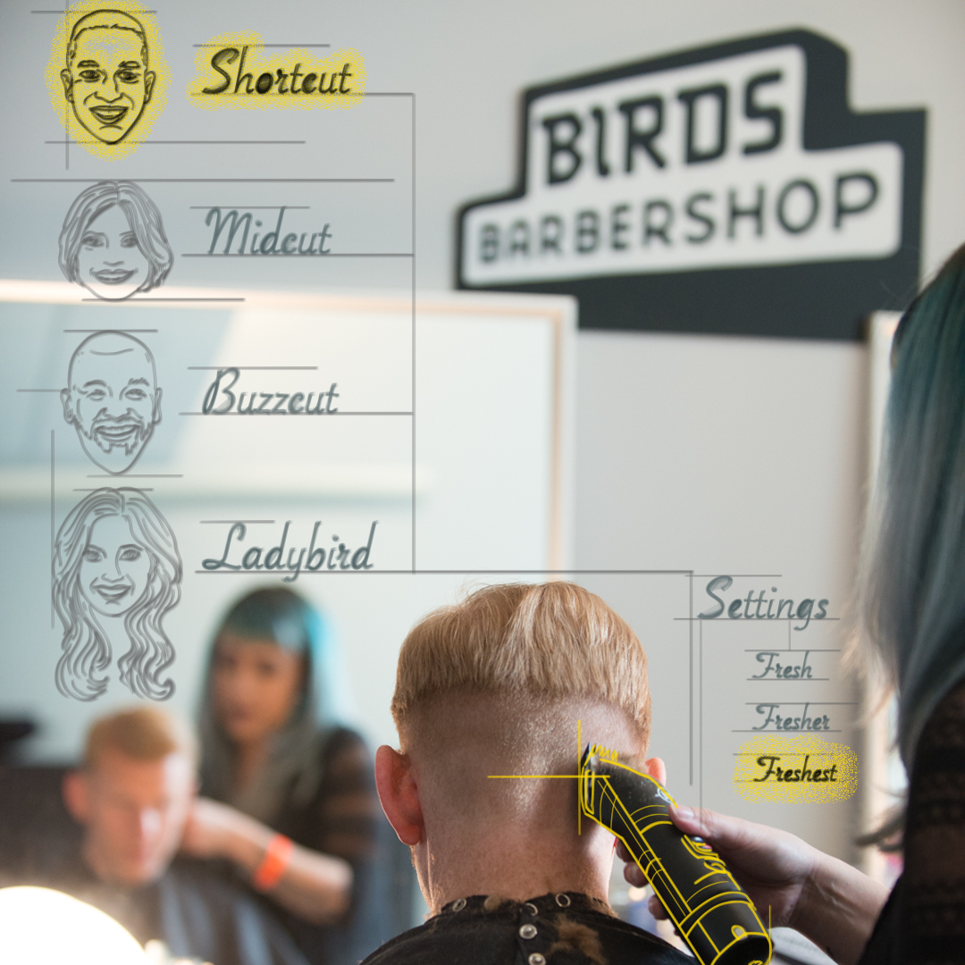 printed signage tying social into hairstyle options given to customers at the event